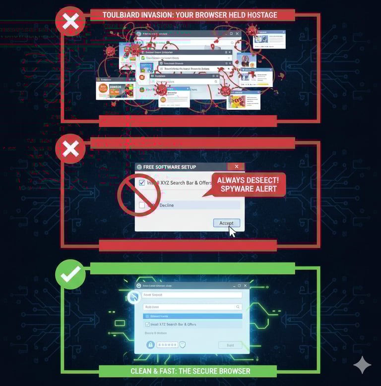« L'invasion silencieuse : Pourquoi ces barres d'outils gratuites vous volent plus que de l'espace sur votre navigateur. »