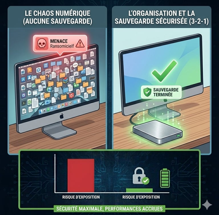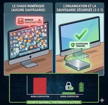 Sauvegardez régulièrement (Règle 3-2-1) : C'est l'étape ultime. Rangez vos dossiers dans une structure logique et sauvegardez. Avoir un "Démarrage propre" sans sauvegarde ne vous protège pas des rançongiciels. Gardez 3 copies de vos données, sur 2 supports différents, dont 1 hors ligne et déconnecté (Disque dur Externe sécurisé).